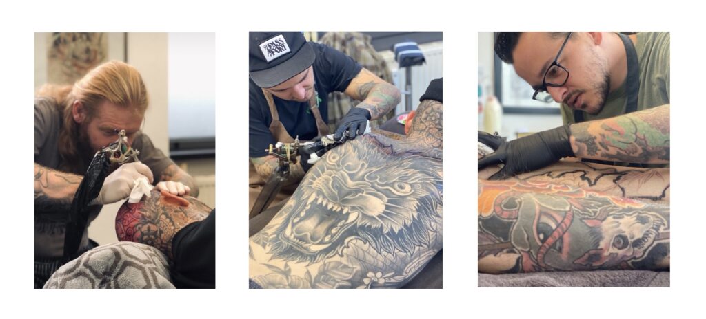 Internationale Künstler wie: Lars Widell aus Canada, Max Funhouse Tattoo aus Madrid, Spanien, Zsolt Machat Atistocrad aus Hamburg/Budapest Ungarn, Eddy Borneo Ink Kualulupur aus Indonesien, Bruno Prost, Fiona Cougan aus Irland, Wolle aus Ulm, Andy Ebert, Filip Filipo aus Bulgaria, Sir Ross Gray aus England/Canada , Sandor Jordan aus Essen und und und…waren in der Vergangenheit schon zu Gast bei uns. Auch ist unser Team immer wieder in anderen Studios zu Gast und knüpft damit weltweit Kontakte und bringt neue Ideen und Umsetzungsmöglichkeiten zurück ins Allgäu. Wo wir schon waren und wie das so war? Das erfährst du in der Rubrik “on Tour”.